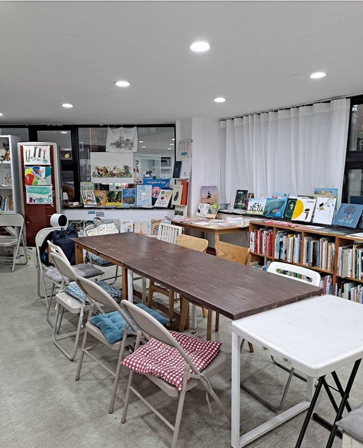 공방처럼 보일 때는 아이들이 항상 머물며 책 읽고 무언가를 만들 때다. 센터처럼 보이는 지금은 비대면 그림책 수업을 잔뜩 만들었고 독서모임과 글쓰기 수업이 수시로 진행되기에 책 파는 공간인 줄 모르고 계시는 분들고 있다. 아무려면 어떤가 나는 이 작은 공간에서 어디까지 일을 벌일 수 있는지 시험 중이다.