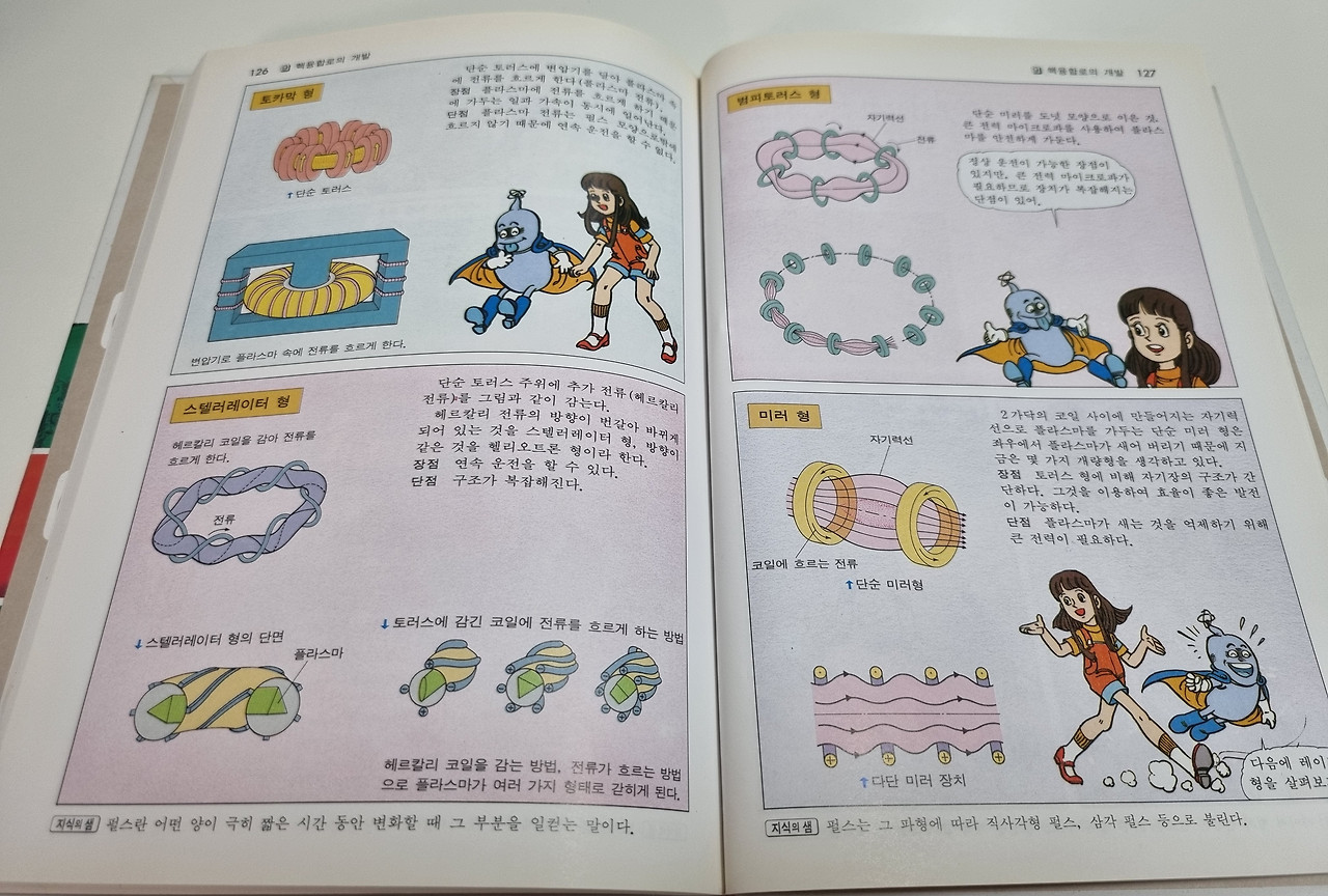 그리고 내용을 10분의 1도 이해하지 못했으나 이상하게 내 마음을 잡아끄는 책이 있었으니, <원자력과 핵융합> 편이었다. 여러 명의 과학자가 등장해 각자 다른 모양의 모형을 만들어 내는 내용인데, 각 모형의 장점과 단점 등이 함께 기술되어 있던 파트가 특히 오래도록 기억에 남았다. 무엇을 위해 만든 모형인지도 전혀 이해하지 못했지만 각각의 형태에서 강렬한 인상을 받았던 것이다.