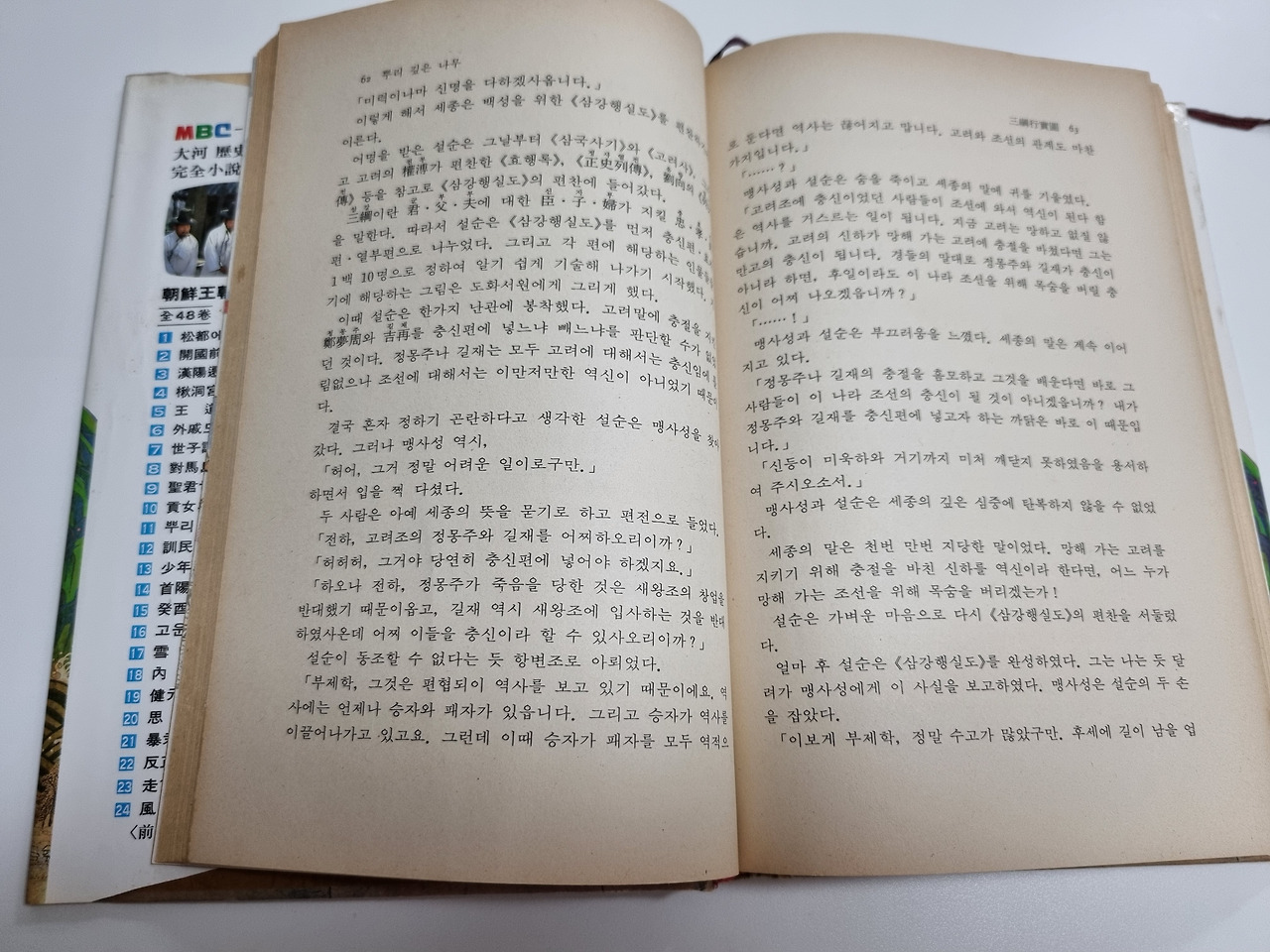 <조선왕조 500년>은 故신봉승 작가가 조선의 역사를 소설식으로 재구성한 작품으로, 대하소설답게 무려 48권이나 되는 장대한 분량을 자랑하는 시리즈다. 나는 그중 한 권부터 시작해 금방 흥미진진한 역사 이야기에 빠져들었다. 옛날 책인 만큼 본문에도 한자가 많이 섞여 있었지만, 다행히 한글 독음이 작게 달려 있어서 읽는데 전혀 문제가 되지 않았다.
