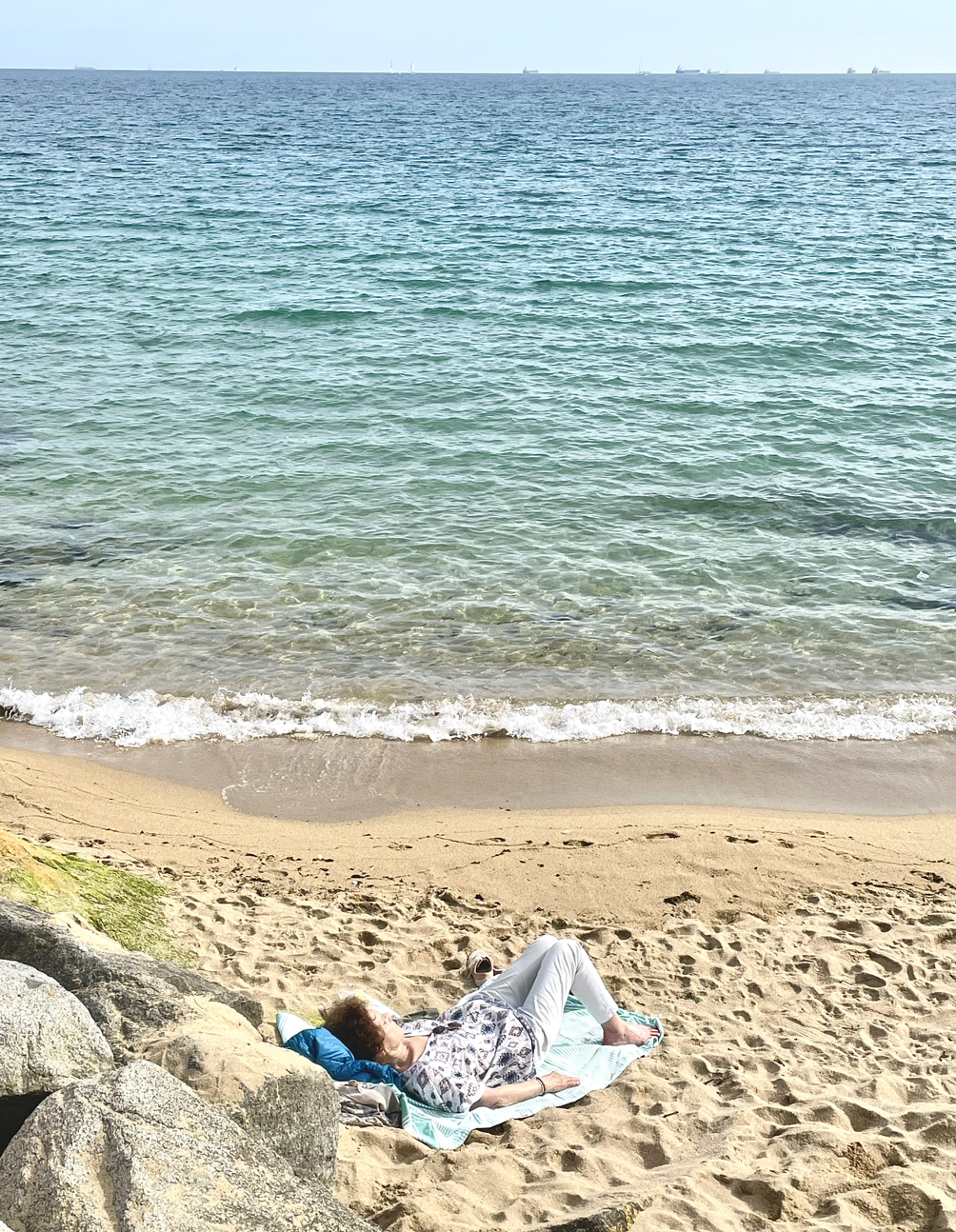 바르셀로네타 해변에서 쉬고 있는 분을 몰래 찍었다.