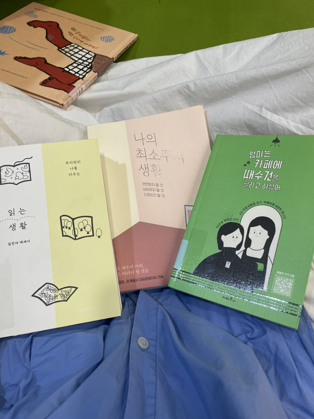 침대에 머리를 뒤로 젖히고 누워 선풍기로 머리를 말릴 때 보송보송해지는 느낌, 하루를 잘 마무리하는 느낌이 좋아서 저녁에도 샤워를 하는 새로운 습관이 생겼다. 작은 행복한 순간들 덕분에 삶이 조금은 더 풍족해진 것 같다.