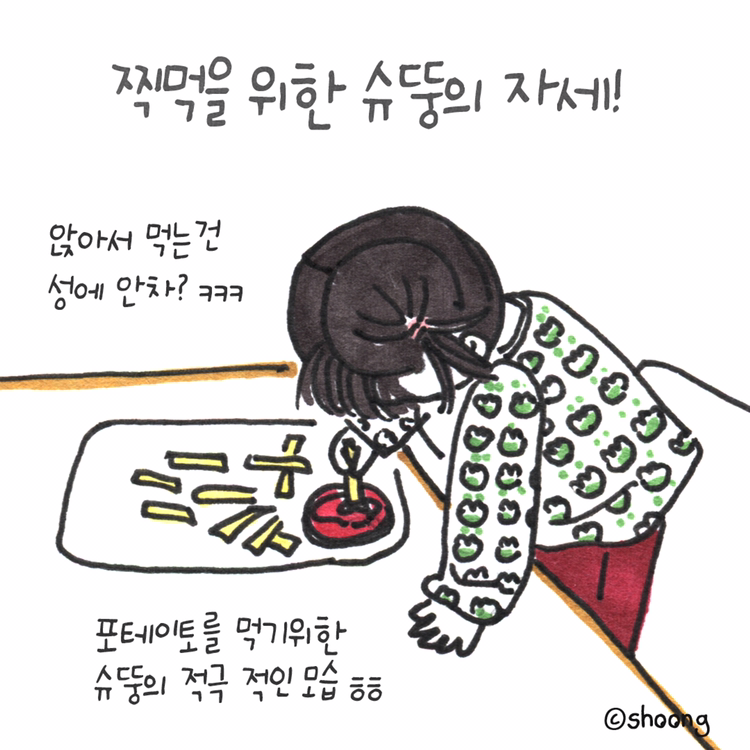 포테이토 케찹 찍어먹다 성에 안차일어나서 찍먹하는 슈뚱 ㅋㅋㅋ앉으나 서나 쪼꼬만게 ㅋㅋㅋ귀요워 슈뚱 ㅋㅋ