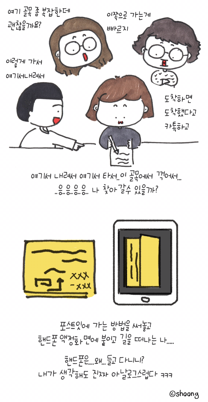 그리고는 포스트잇을 보고 길을 찾아간다,,,