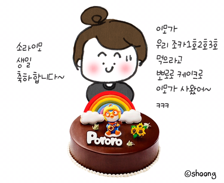 내가 뽀로로 케이크 예약해서 사왔다 ㅋㅋㅋ