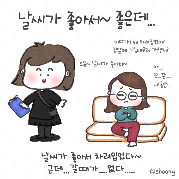 언니가 "날씨가 좋아서? 으응...." 하면서