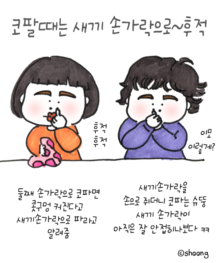 자꾸 둘째 손가락으로 코후비는 슈뚱..