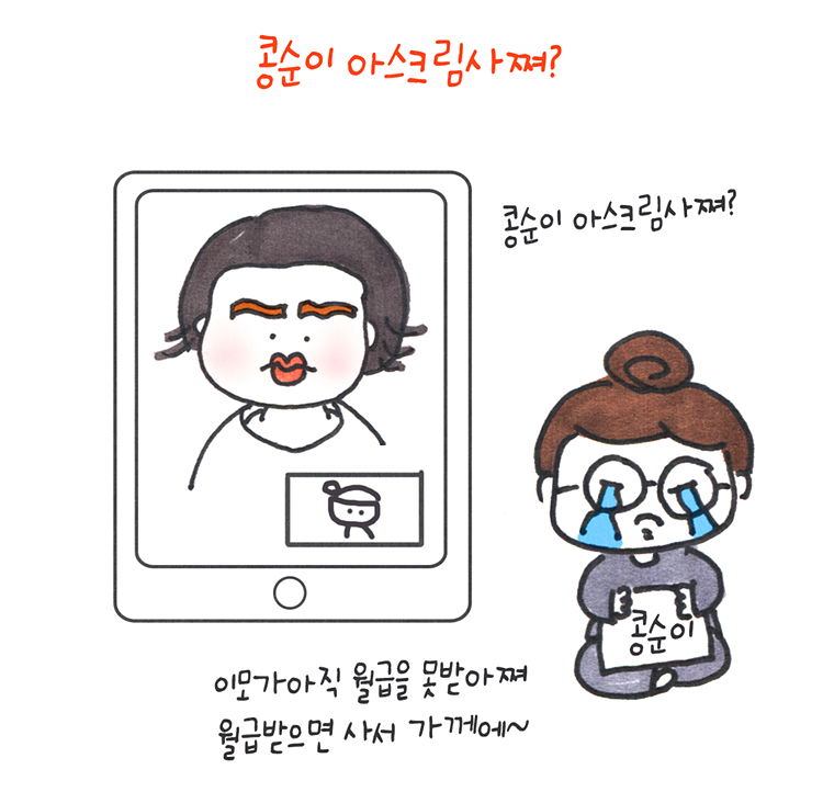 콩슌이 아스크림가게 사가지고 간다고
