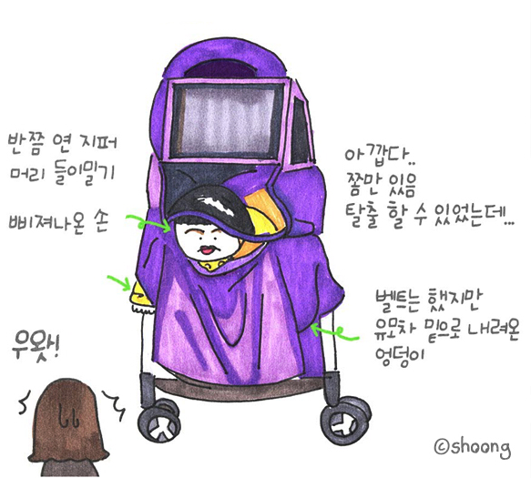 유모차 탈출을 시도하는 슈뚱... ㅋㅋㅋㅋ