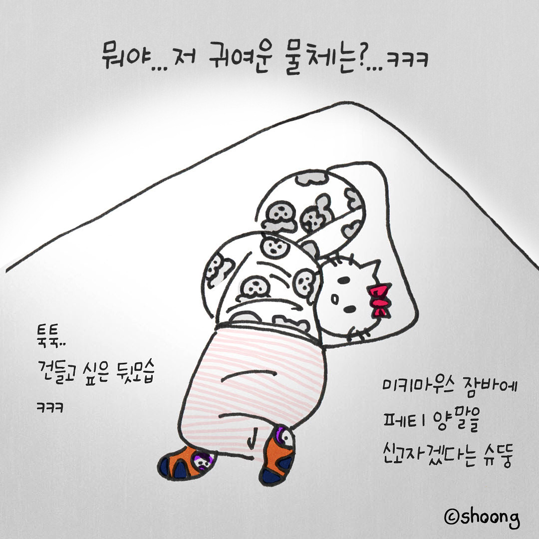 뭔가 귀욥고 작은 물체 하나가 누워있다 ㅋㅋㅋ
