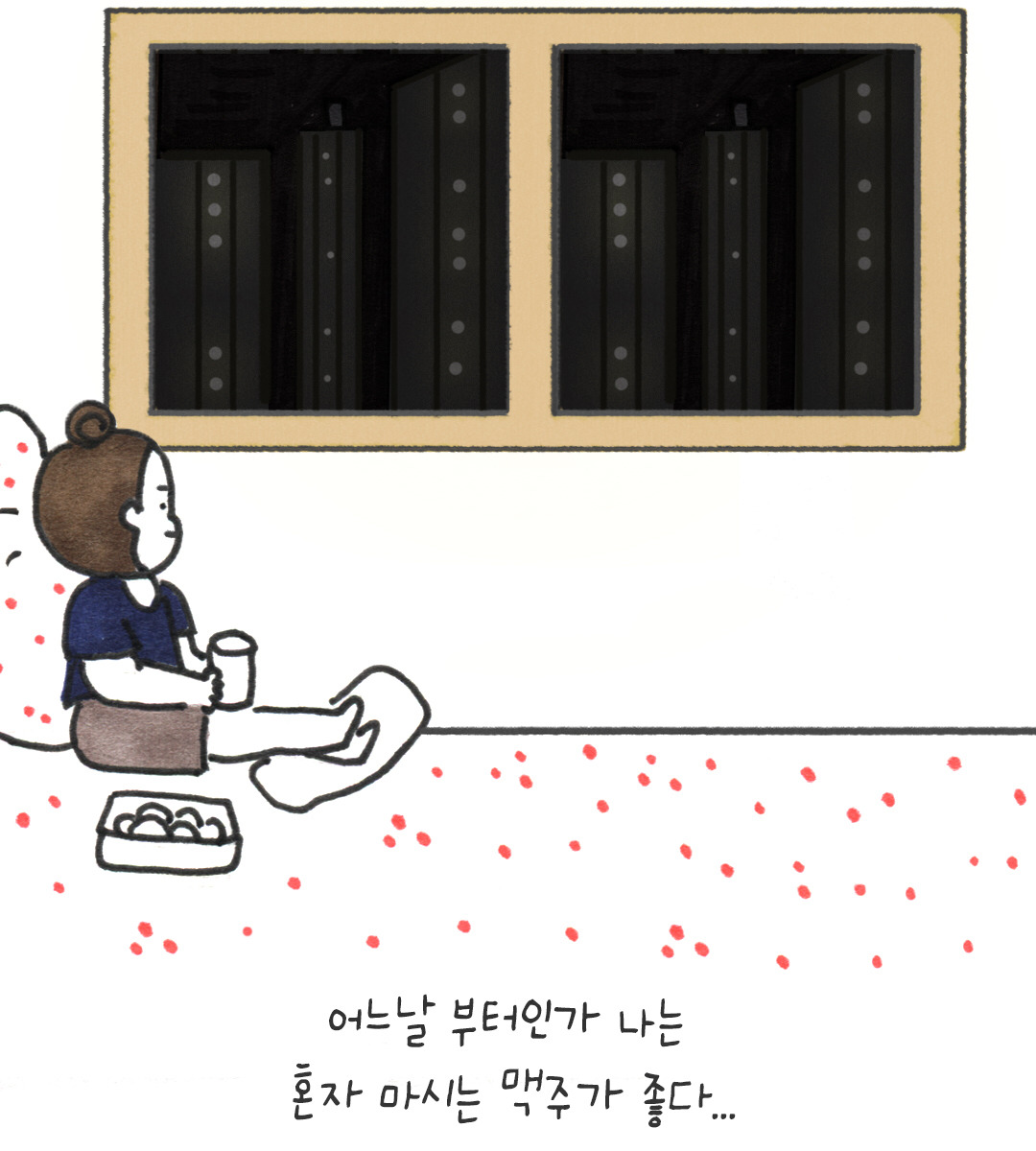 #그냥노처녀#공감에세이#웹툰#캐릭터#일러스트#손그림#여름#무더위#주말#맥주#홈런볼#쵝호
