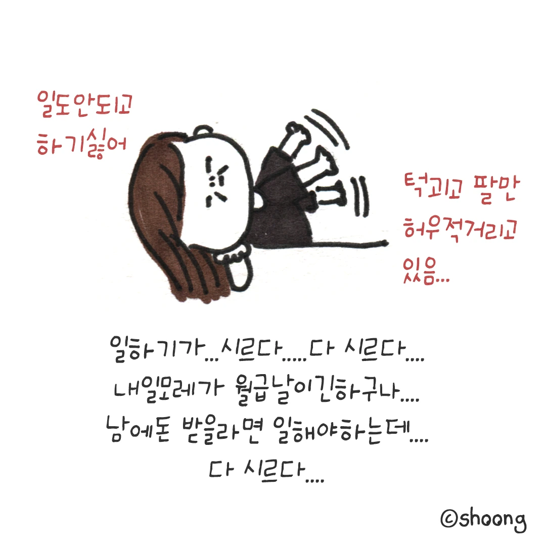 일하기 싫어서 턱 괴고 손만 허우적거리고 있다....