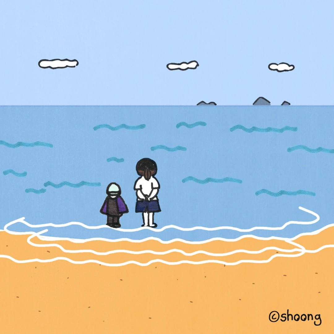 #바닷가 #외로운 #노처녀 #이모 #조카2호 #쓰담쓰담 #감동이구만 #파도온다고혼자도망간못난이모#미안해 #ㅋㅋㅋ