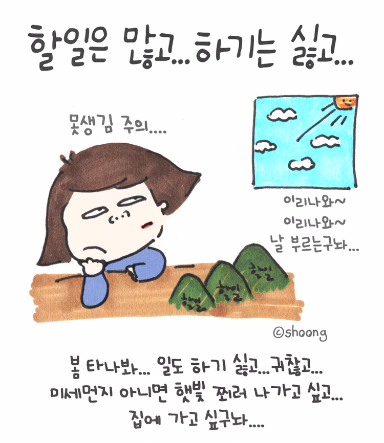 일좀 하고 가끄나~~~