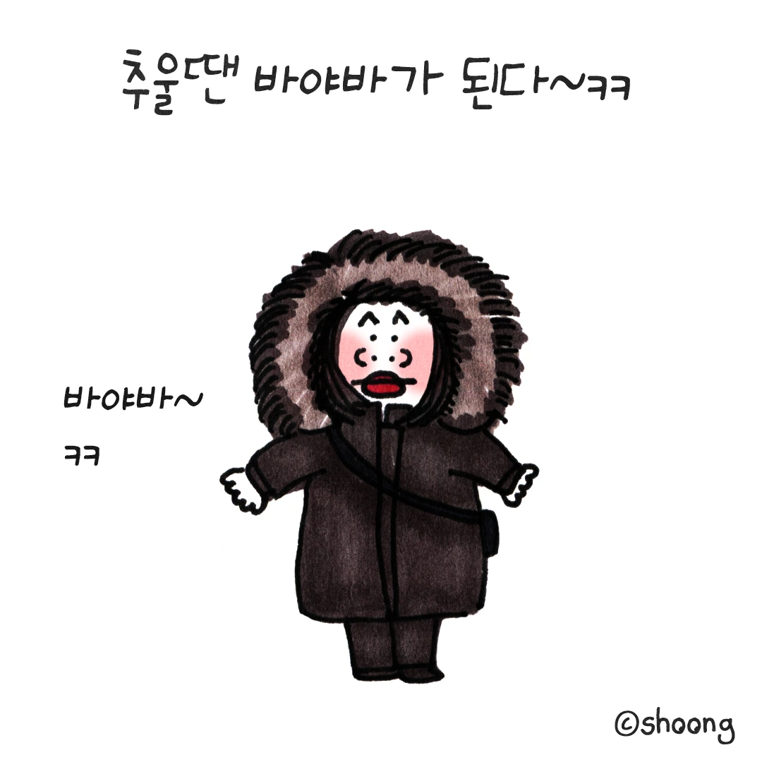 #춥다#너무춥다#뒤뚱뒤뚱#털모자#바야바