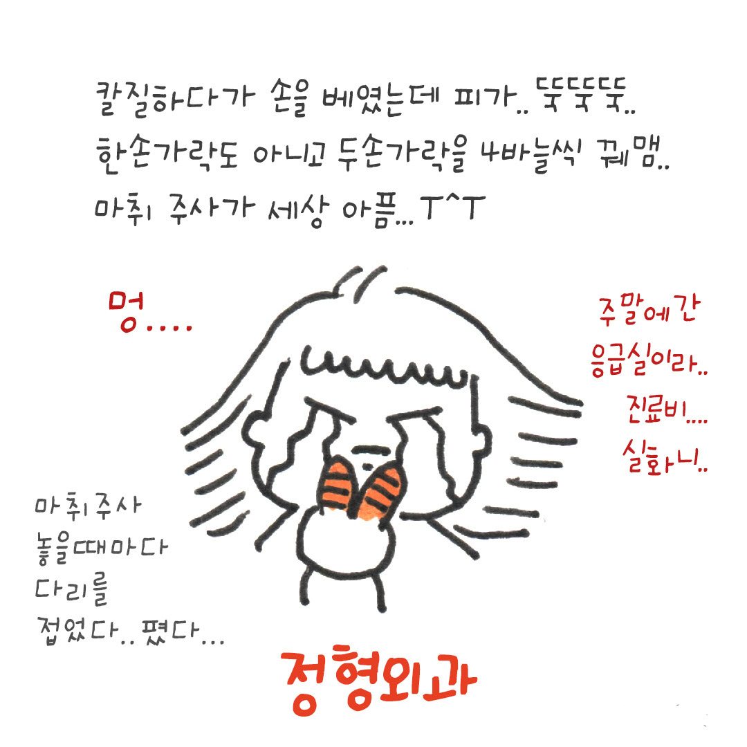 손가락 꿰매면서 아파서 발길질 엄청해댐