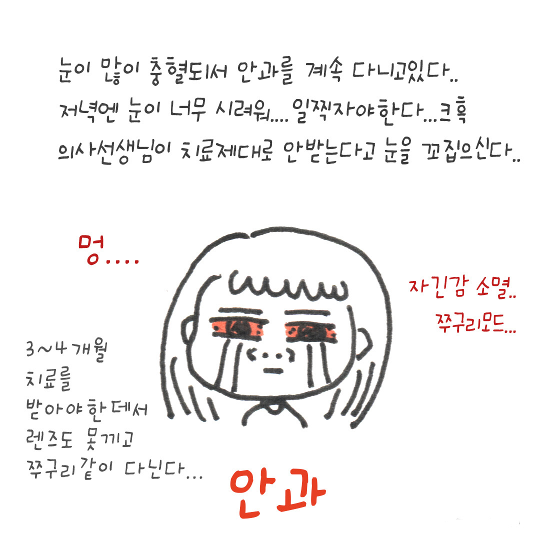 밤에는 눈이 더 따가워 일찍 자야하는 분위기