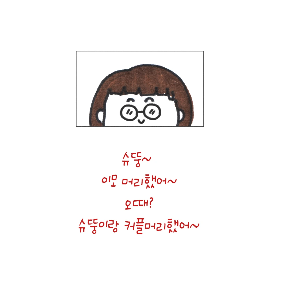 #슈뚱오는날#커플 #스타일 #한지민머리 #상큼변신 #나는마음에드는데 #씐나서 #영상통화 #시큰둥한마흔 # #괜히잘랐나 #풉 #이모는오늘기분업#슈뚱오는날