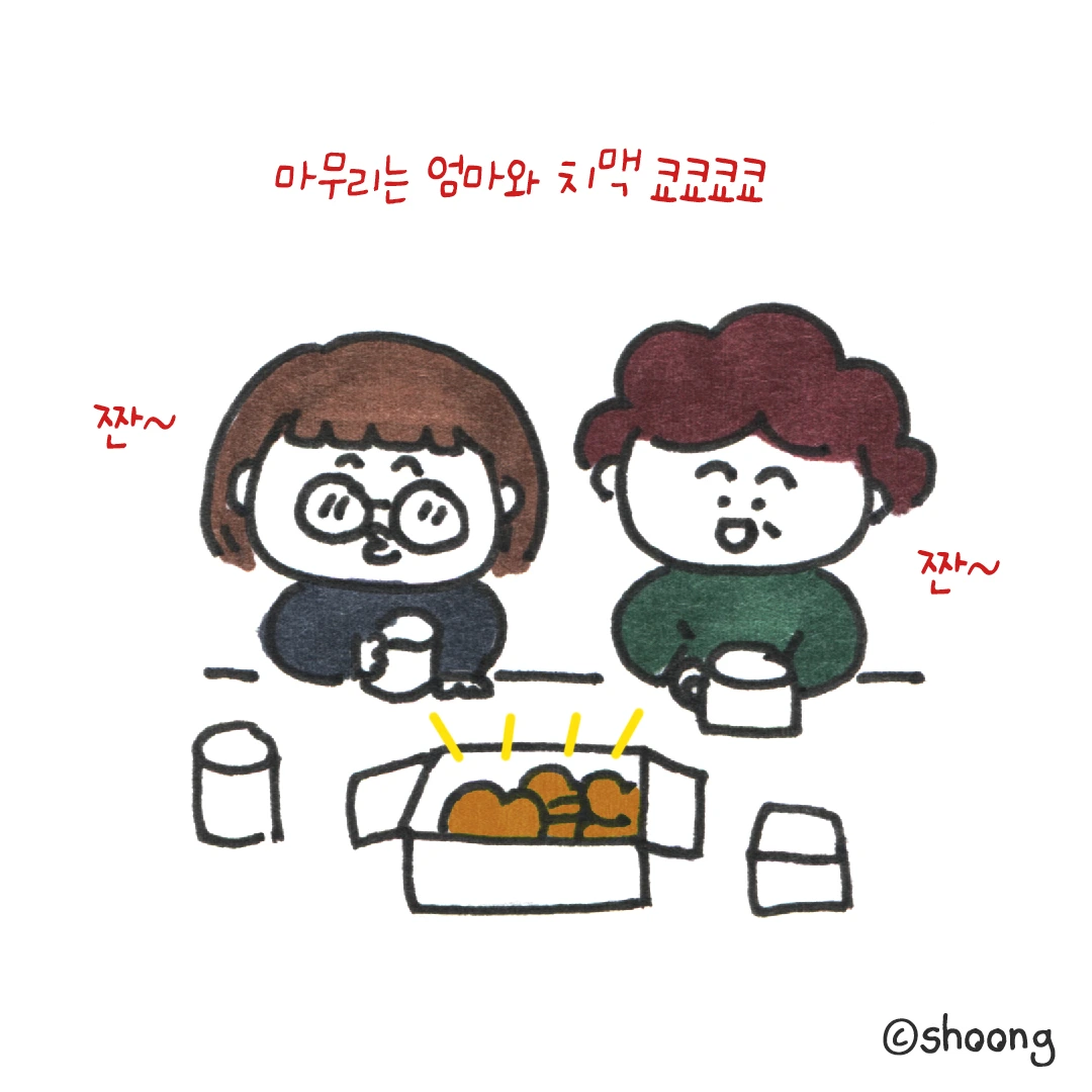 그래서 엄마와 저는 치킨에 맥주를 한잔합니다.