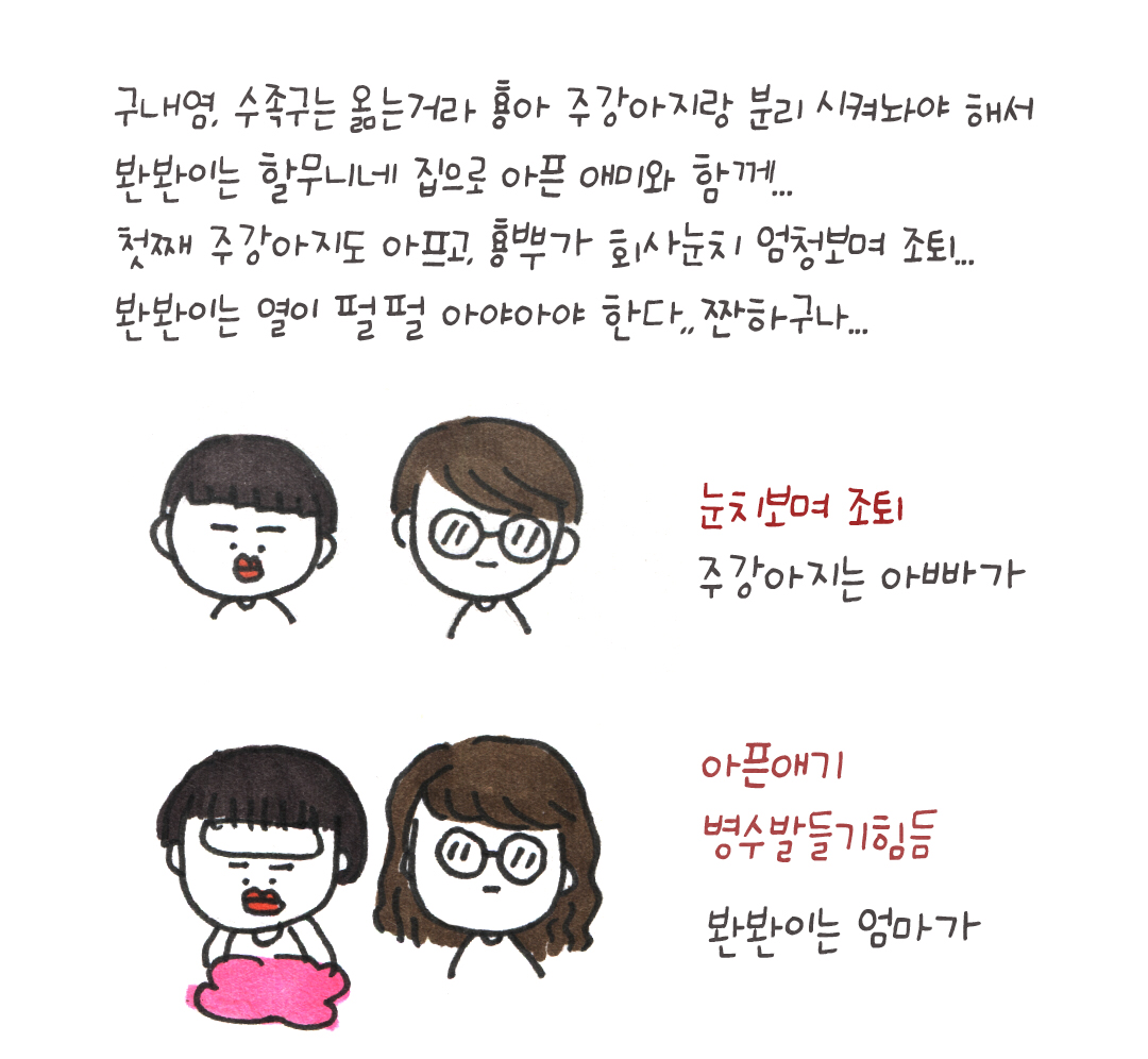 둘 다 아파서 힘없이 있는 게 짠하구나