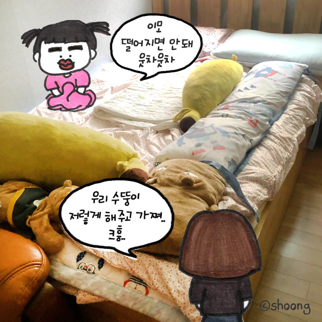 이모 침대서 떨어지면 안 된다고