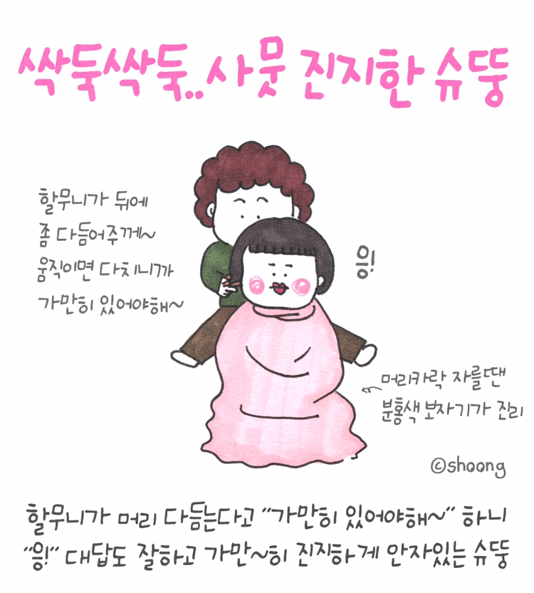 할무니가 슈뚱 뒷머리 다듬어준다고