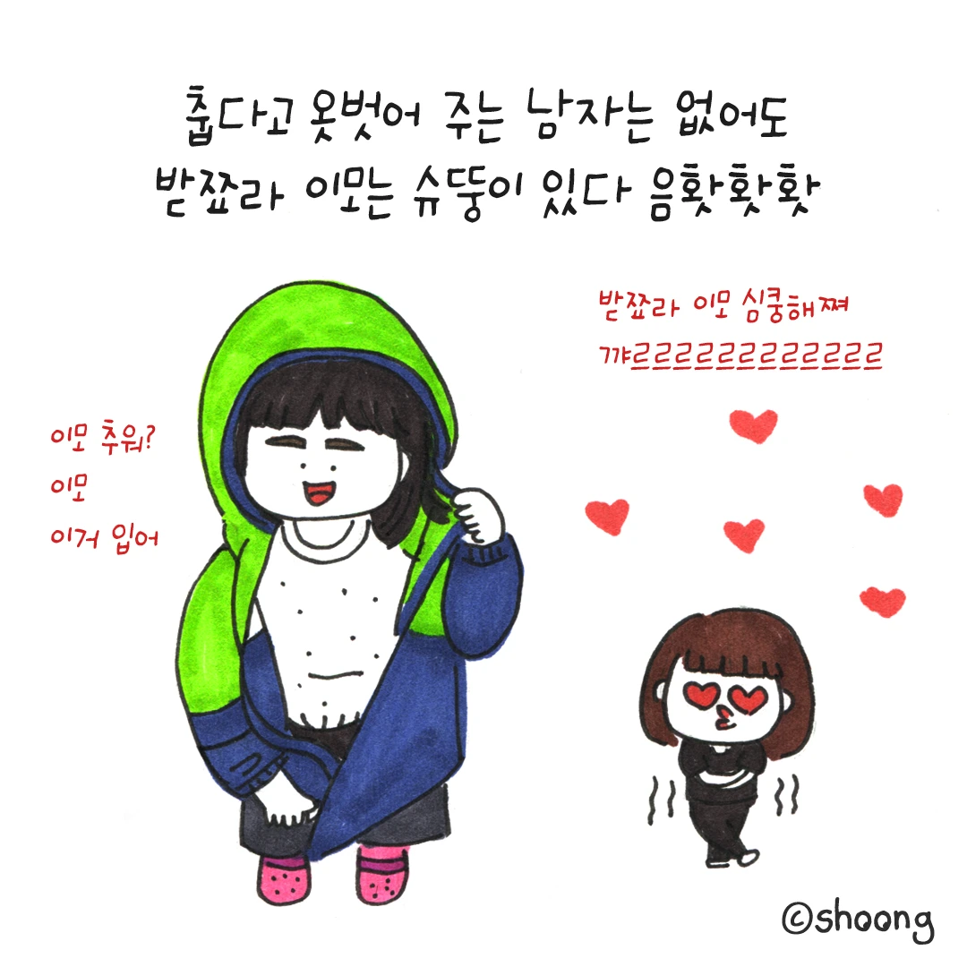 추우면 옷 벗어주는 조카가 있다 ㅋㅋ