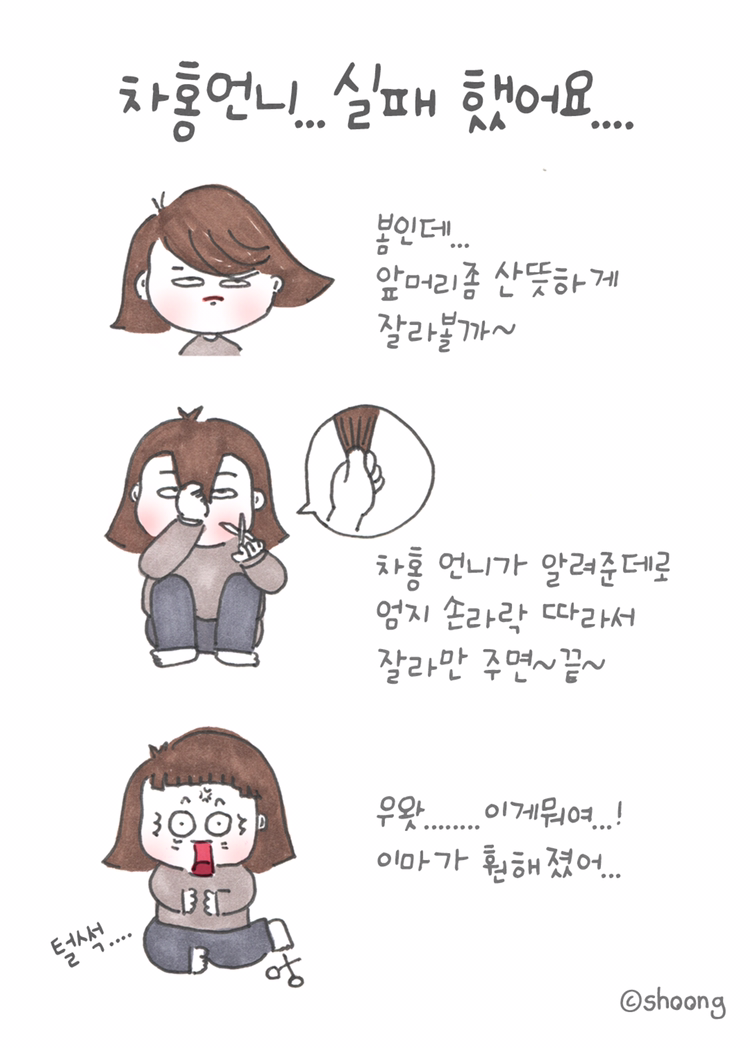 테레비에서 차홍 언니가 앞머리 자르는 법을