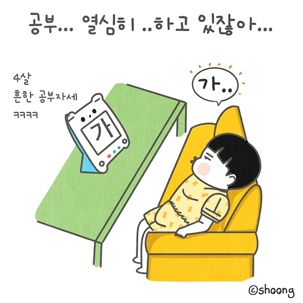 네 살 조카의 흔한 공부 자세 ㅋㅋ