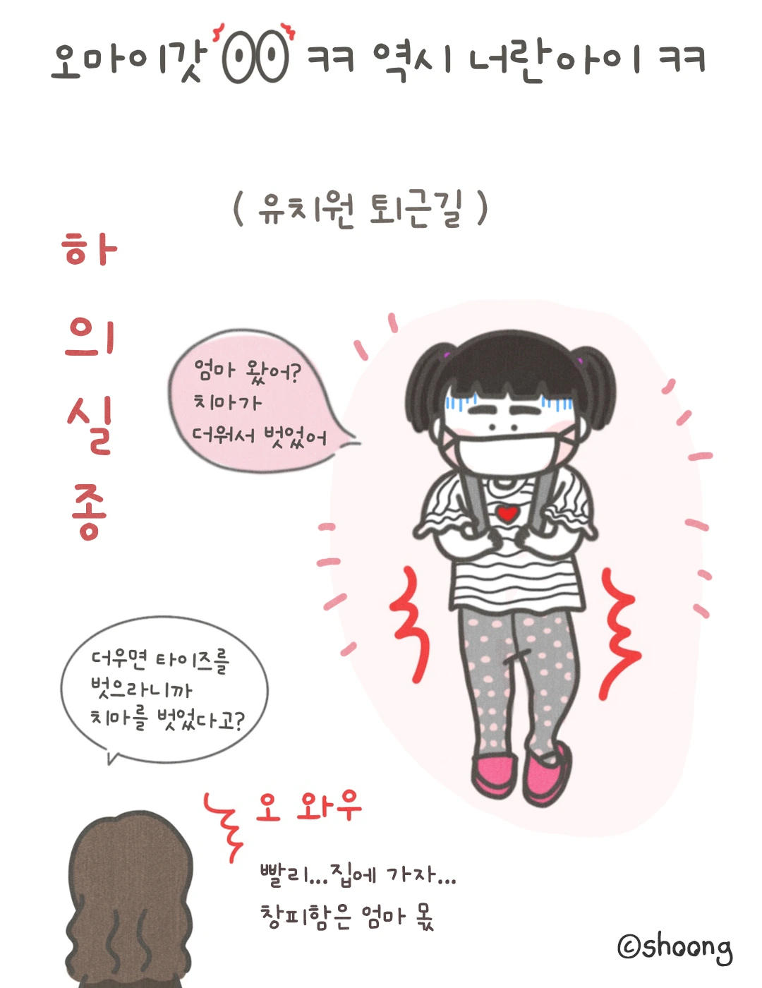 #유치원 #등교룩 #패션쇼 #한여름 #겨울용타이즈 #안더워?#패션의완성 #마이웨이 #하원길 #오마이갓 # #제딸인가요 #하의실종 #ㅋㅋㅋ #빨리차에타 #창피함은엄마몫