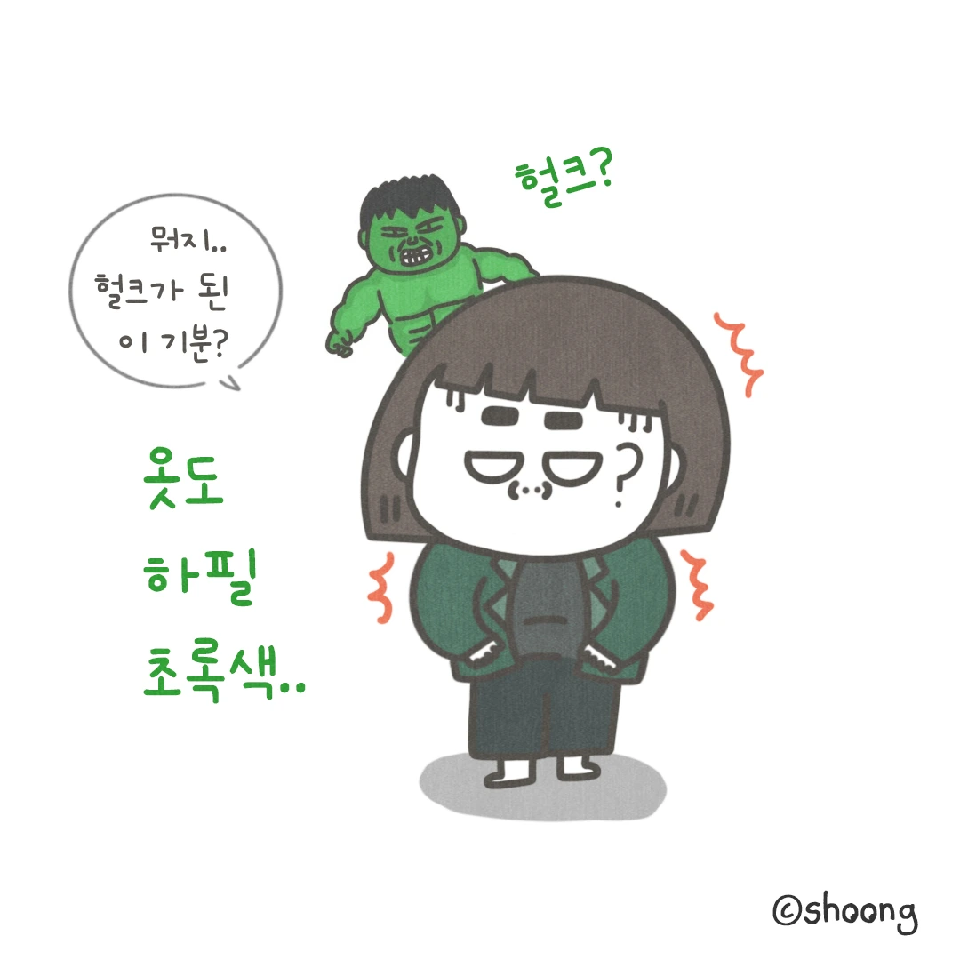하필 옷도 초록색이라