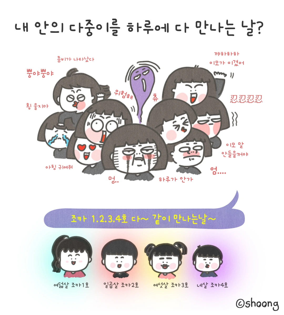나는 보았다 나의 다중성을...ㅋㅋ 나이도 다르고 성격도 다른 조카1.2.3.4호가