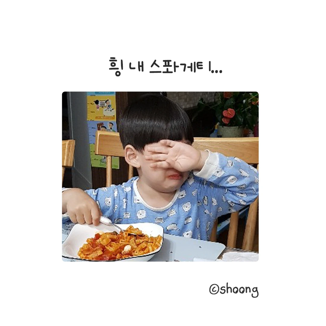 스파게티 먹는다고 씐나있는 조카4호 봔봔이