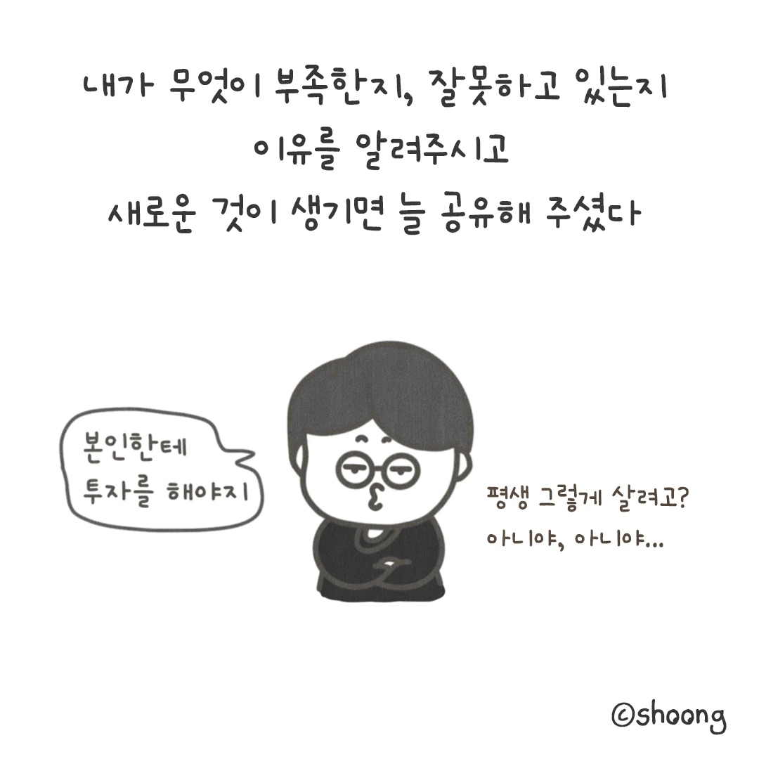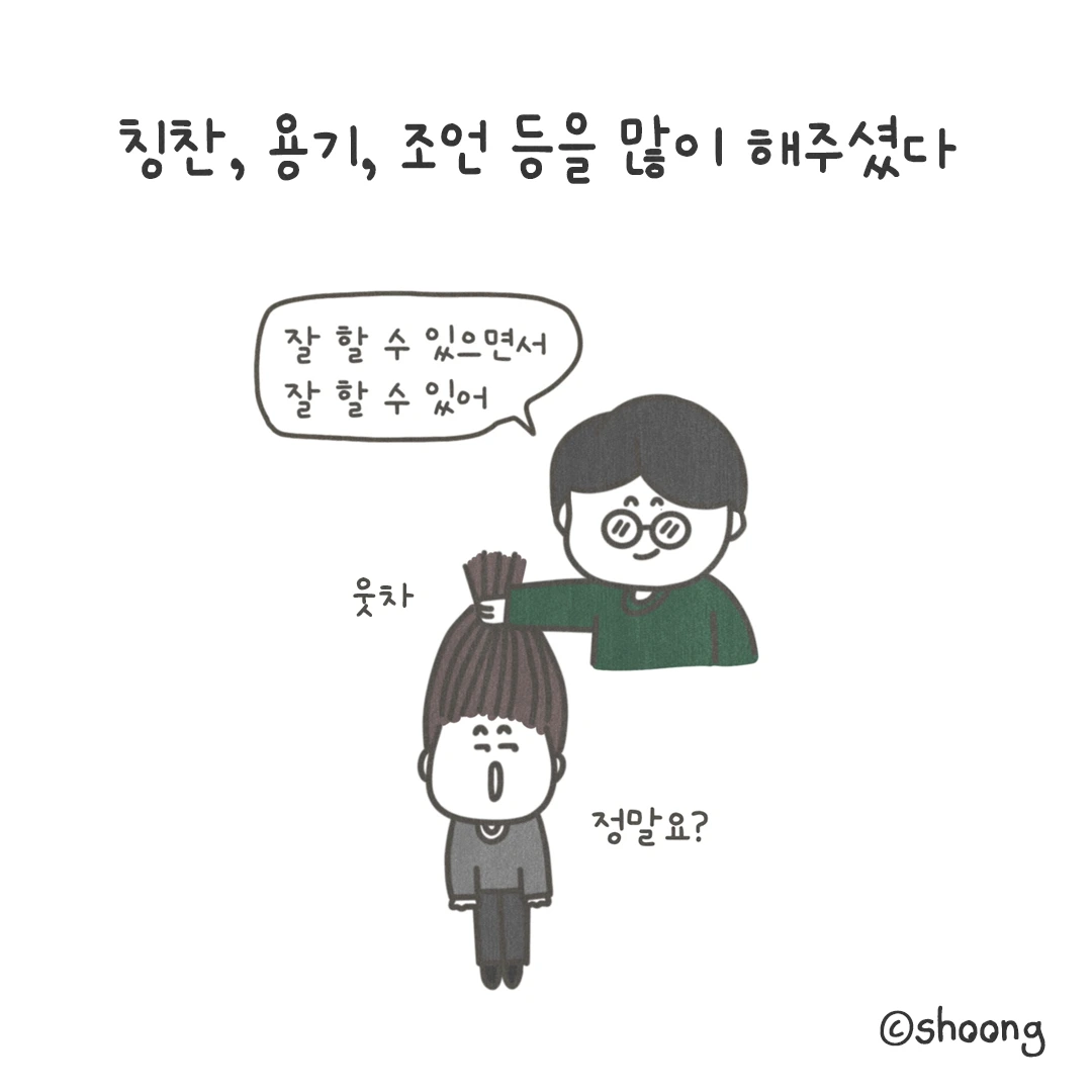 내가 어떤 장점이 있고 그 장점을 어떻게 살리면 되는지 알려주셨다. 내가 좌절하려고 할 때마다 다독여주셨다.