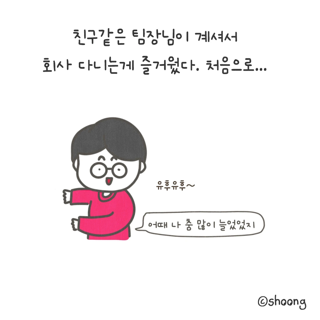 파이팅 넘치는 팀장님이 있어서 회사 다니는 게 즐거웠다. 처음으로..