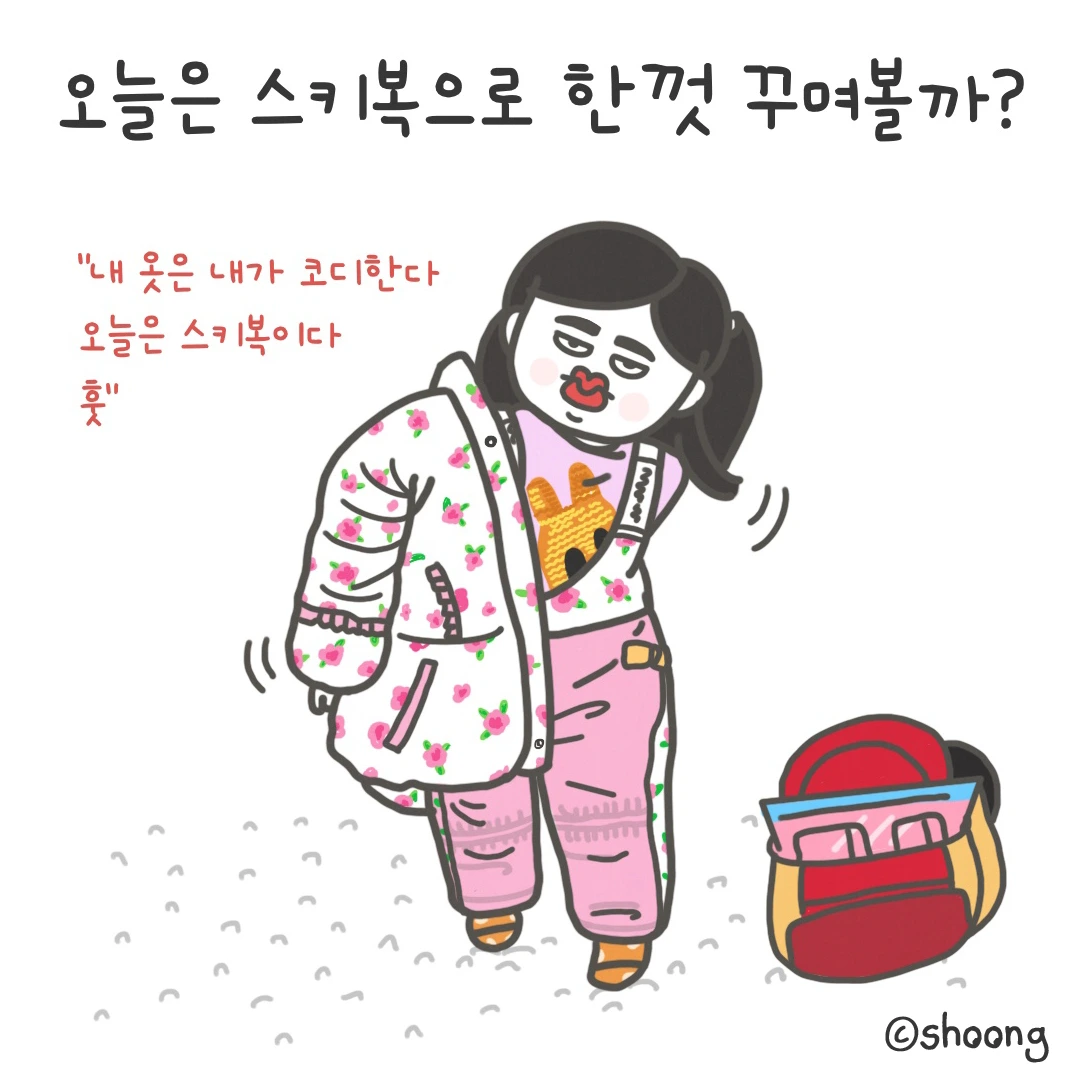 오늘은 꽃무늬 스키복 훗훗