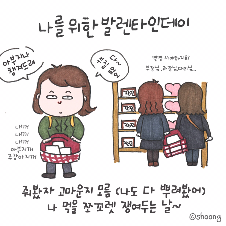 어떻게 해서든 예쁜 초코렛을 주려고 꼼지락거리고 있는데 팀장님하고 동기 친구가 안가고있다...