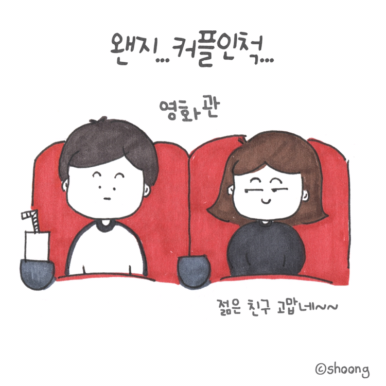 엄빠랑 영화관을 갔는데...어째 ... 죄다 커플이야 앞으로 옆으로.....라고 중얼중얼 거리고 있는데...저 멀리서 잘생긴 청년이 걸어오더니