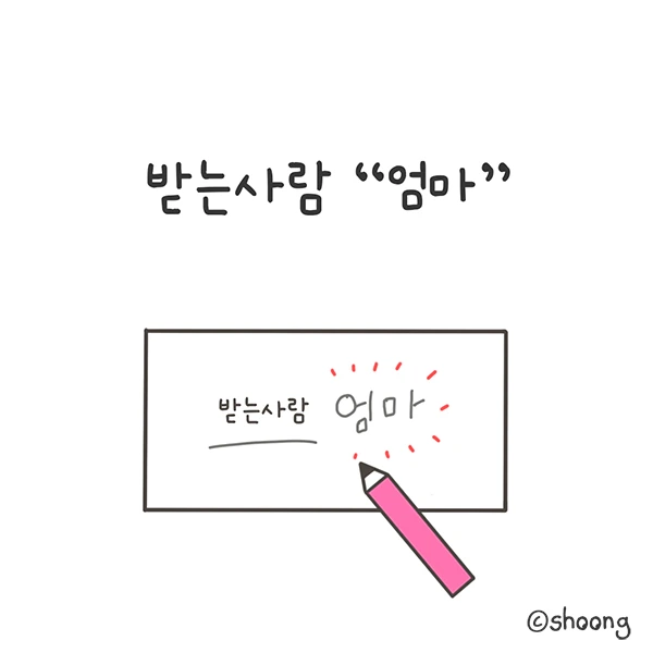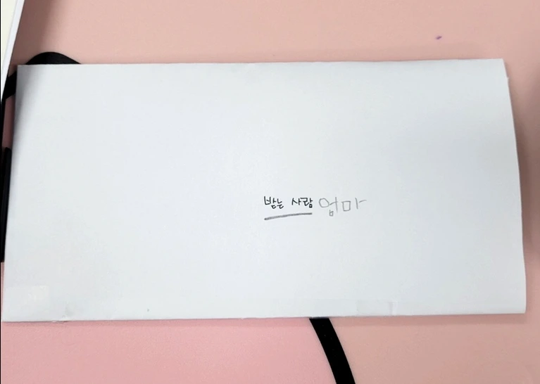 받는 사람이라고 적어준 글씨 옆에 "엄마"라고 적은 슈뚱