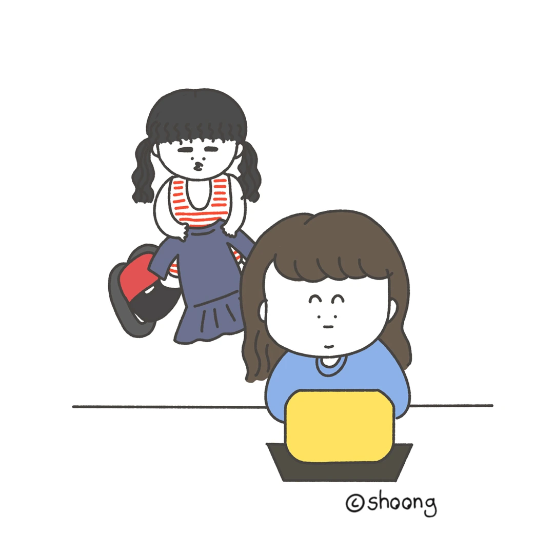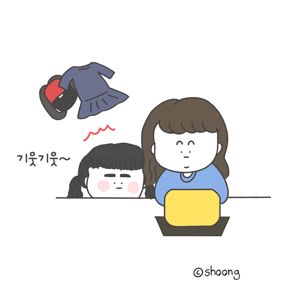 슈뚱이 갑자기 엄마 옆으로 와서 기웃기웃거 린다... 다시 제자리로 돌아가 옷을 코디하다가, 또 엄마 옆을 기웃거린다.