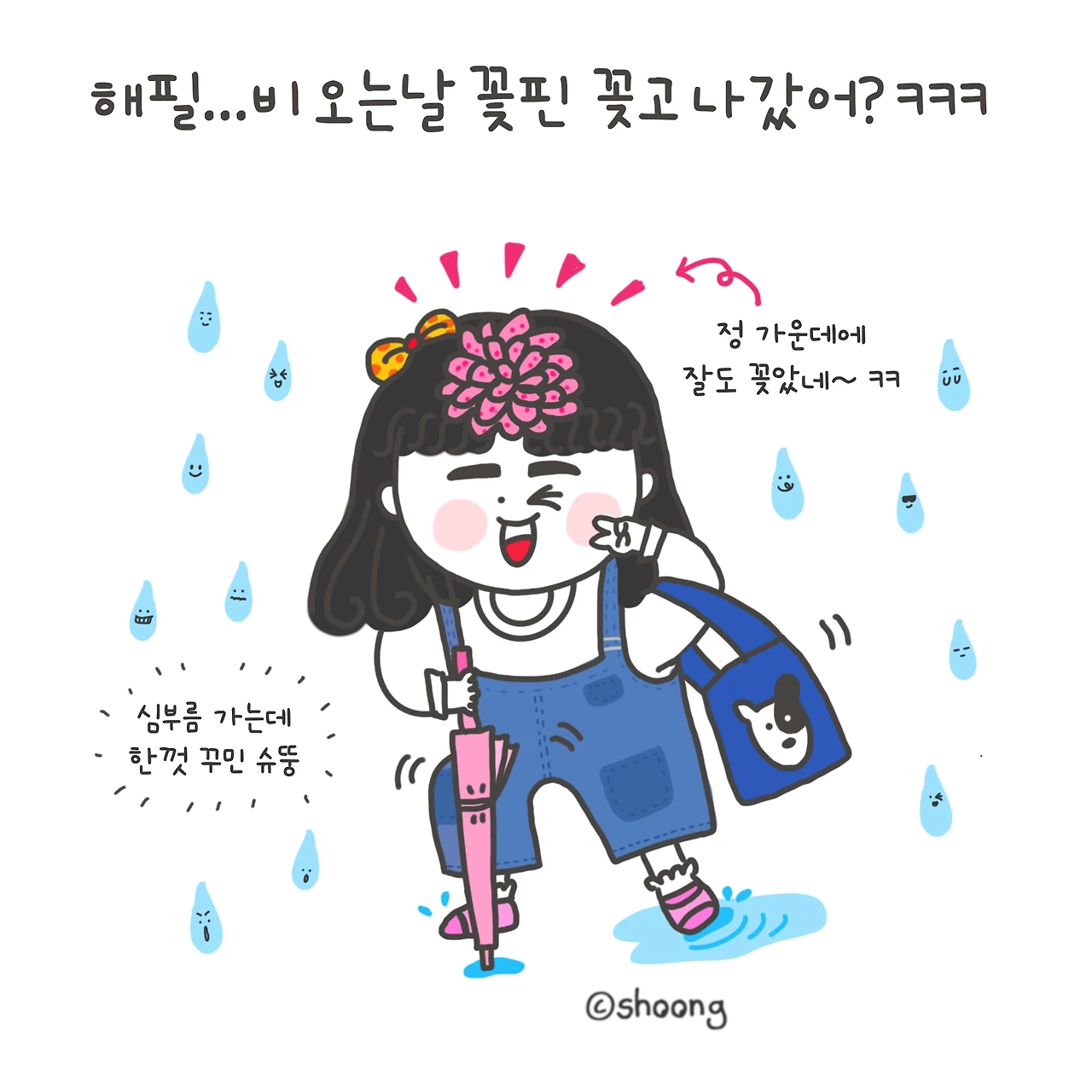 #비오는날#머리에꽃핀#머리정중앙#ㅋㅋㅋ#킬포