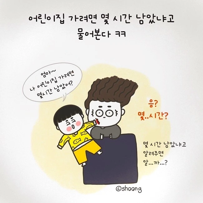 엄마~ 나 어린이집 가려면 몇 시간 남았어? ㅋㅋ