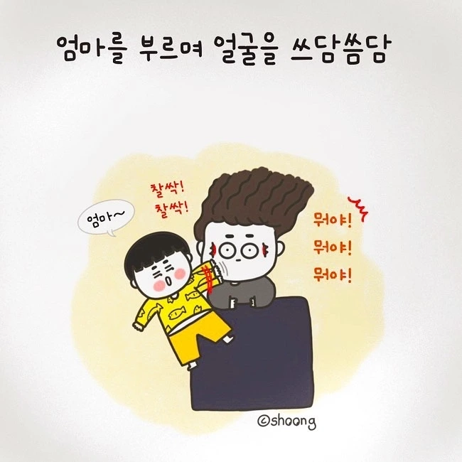다시 엄마 얼굴을 부비적 부비적거리면서