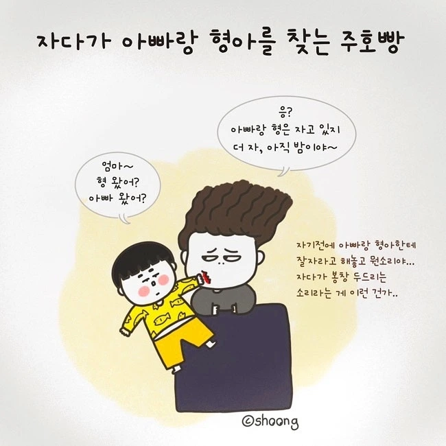 주호빵 : "엄마~ 아빠랑 형아 왔어?"