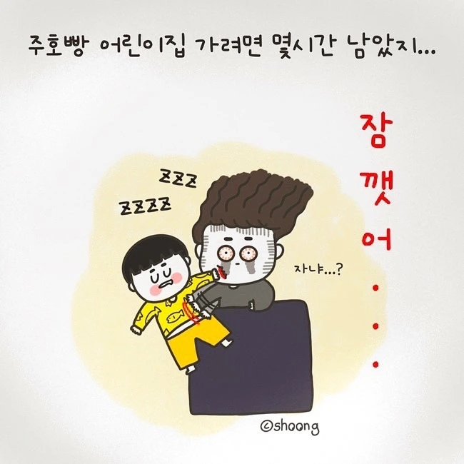 "더 자~ 어린이집 가려면 아직 멀었어~"