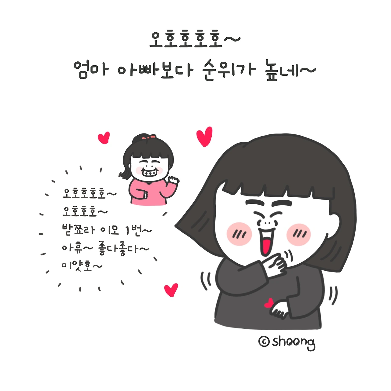 오호호호호호호 슈뚱 엄마 아빠를 제치고 받쬬라 이모가 1번이란다~ 꺄르르르르
