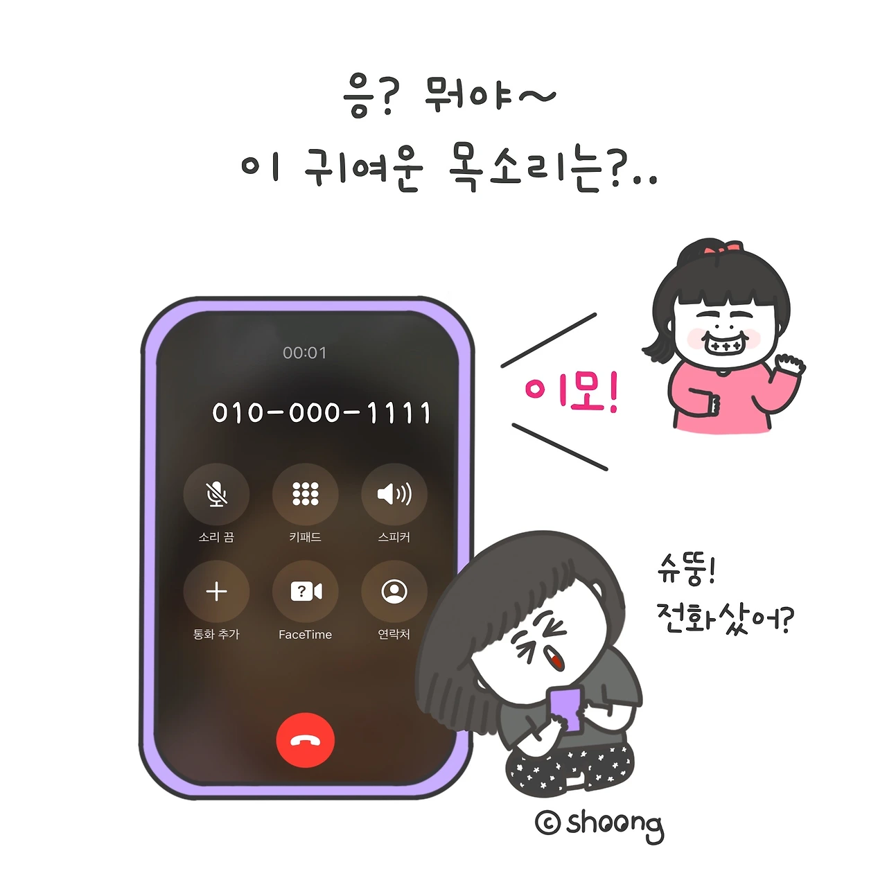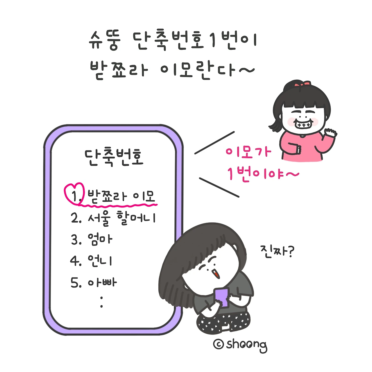 조카 3호 슈뚱 핸드폰 단축 번호 1번은 받쬬라 이모~