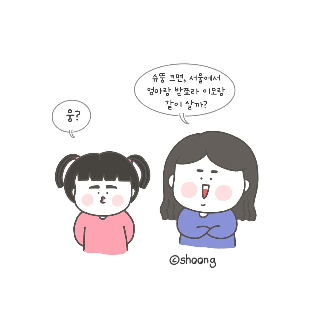 "슈뚱 크면 서울 가서 받쬬라 이모랑, 엄마랑, 슈뚱이랑 같이 살까?"