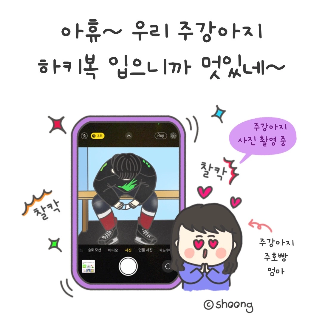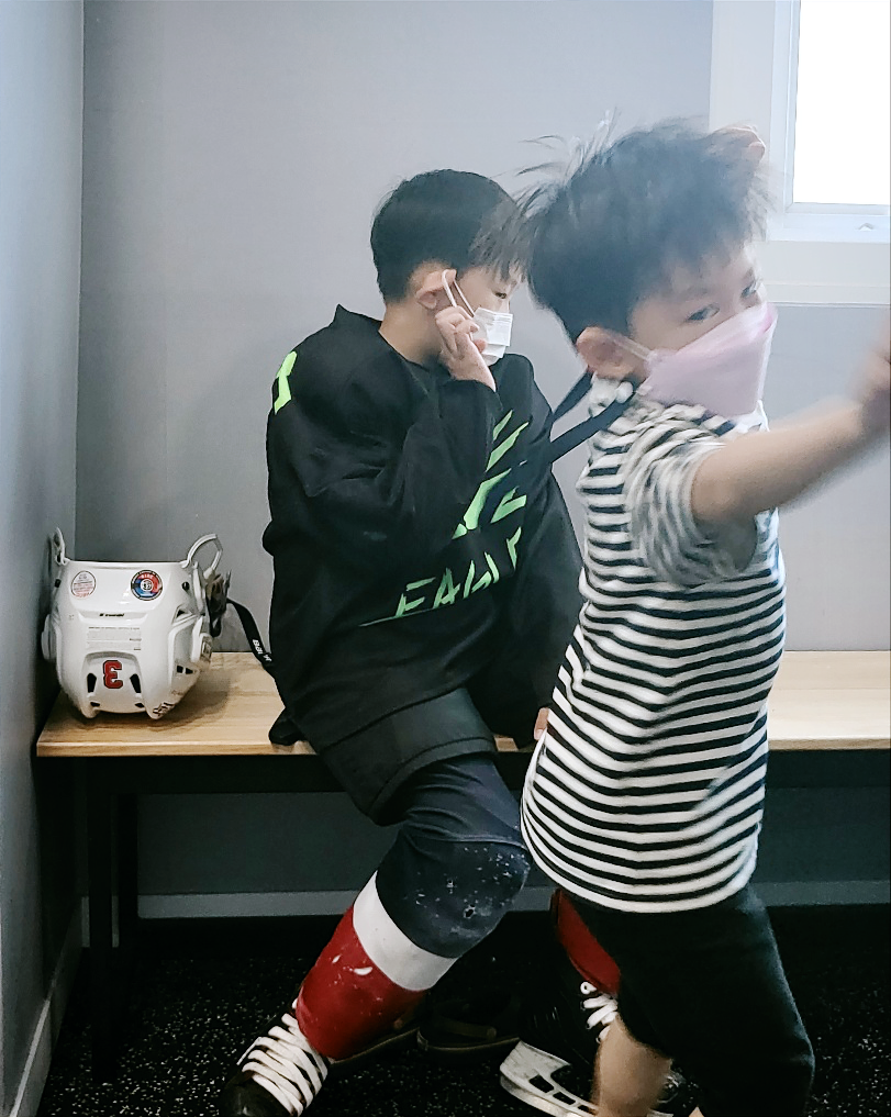 초등학생 조카 2호 주강아지는 다리에 힘을 키우기 위해 아이스하키를 배우고 있다.