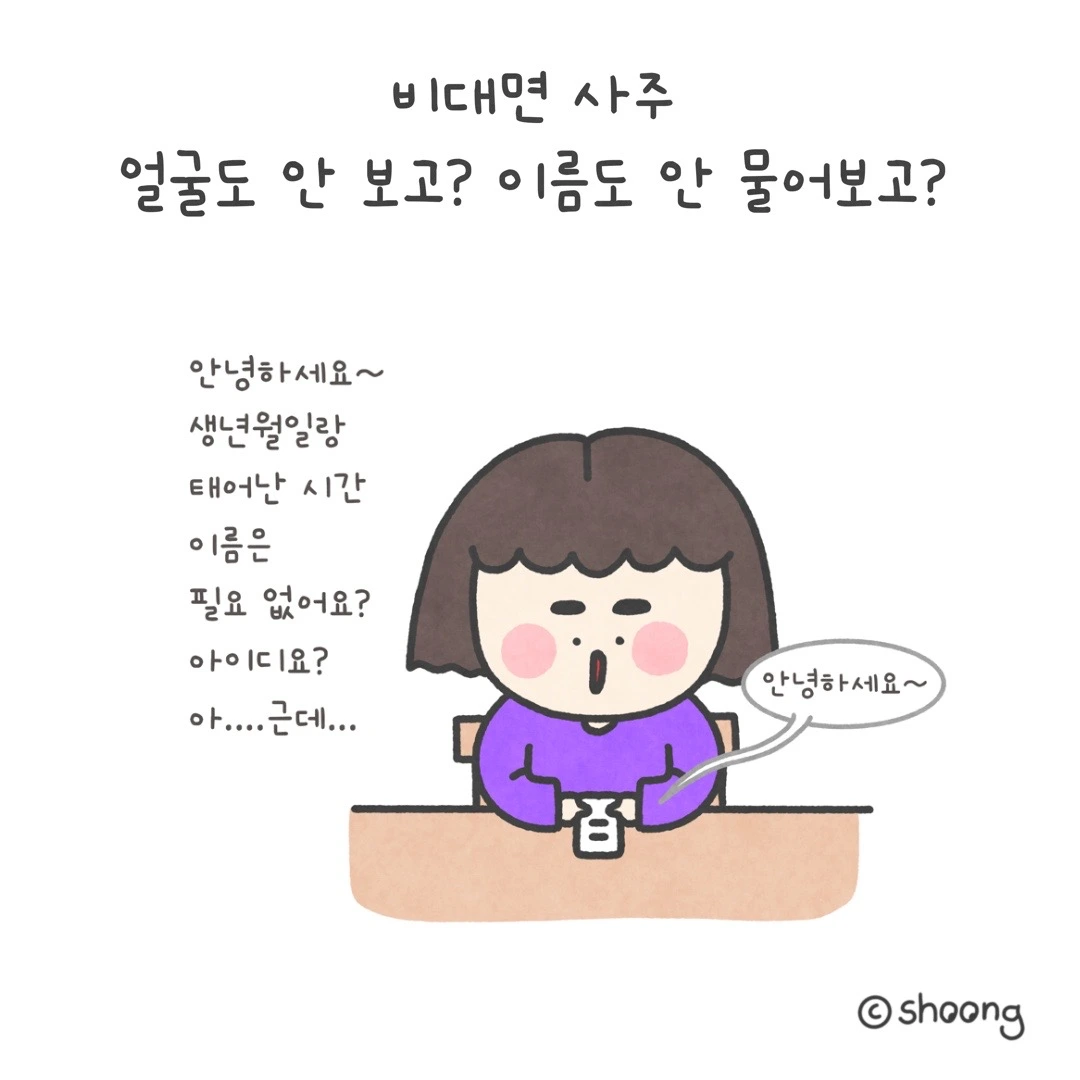 얼굴도 안 보고, 이름도 안 물어보고 내가 자주 쓰는 아이디랑 태어난 시간만 가지고 사주를 본단다. 음....