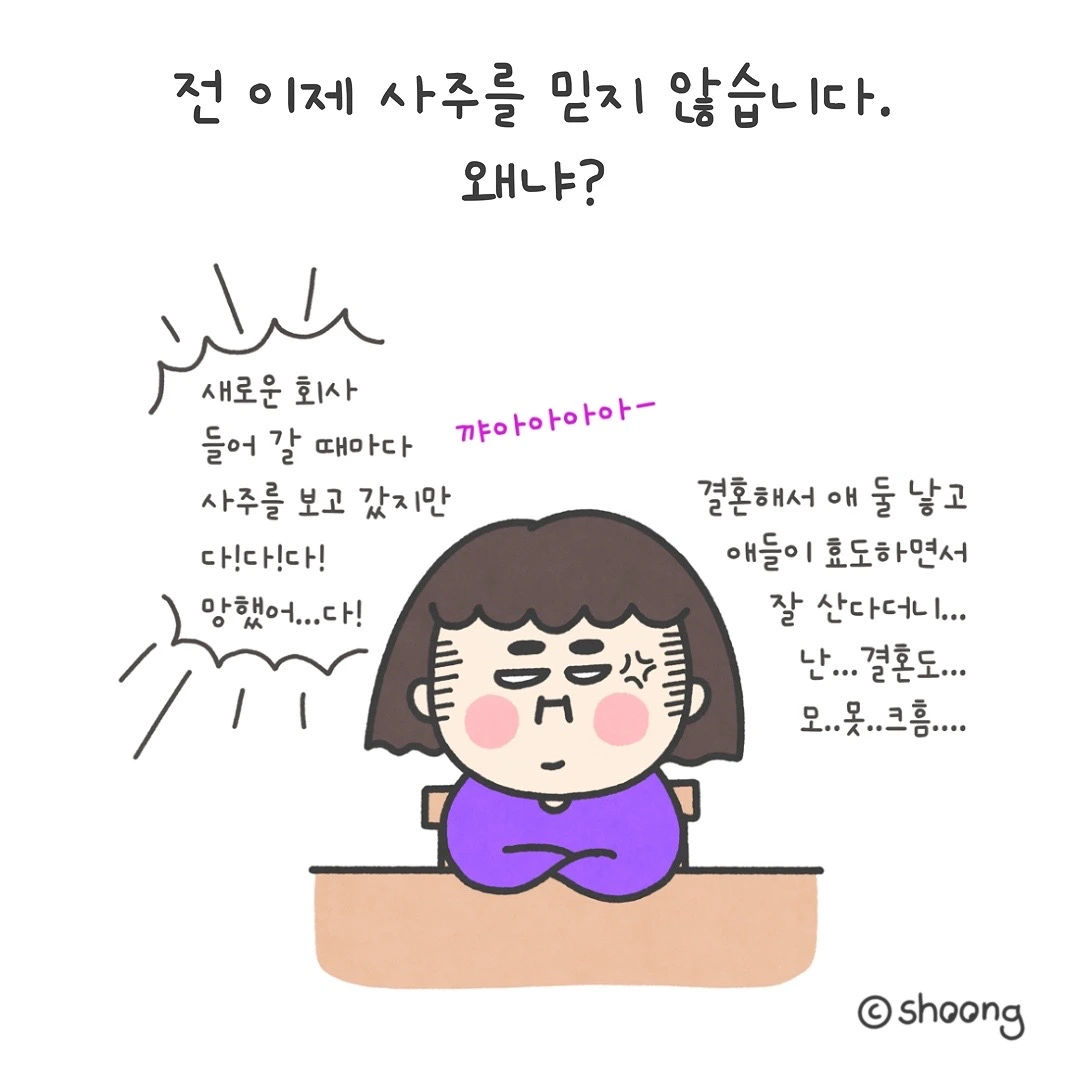 왜냐면, 회사가 망할 때마다 지푸라기 잡는 심정으로 사주를 보고 새로운 회사를 들어갔지만 다들 괜찮다고 했지만... 망했다. 다~ 망했다.